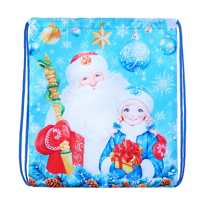 Новый год. Сумка под сладости 290 x 340 мм "Дед Мороз и Снегурочка" (мягкий полиэстер плотностью 210D)