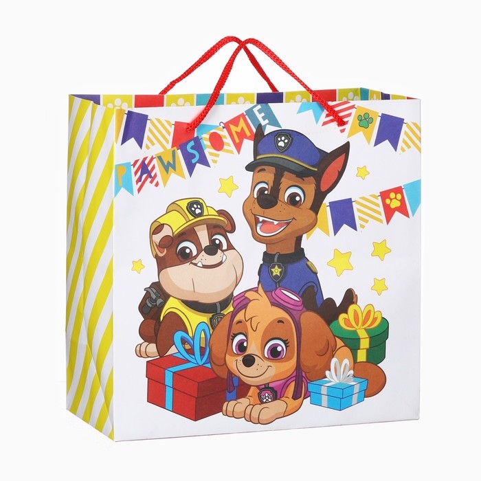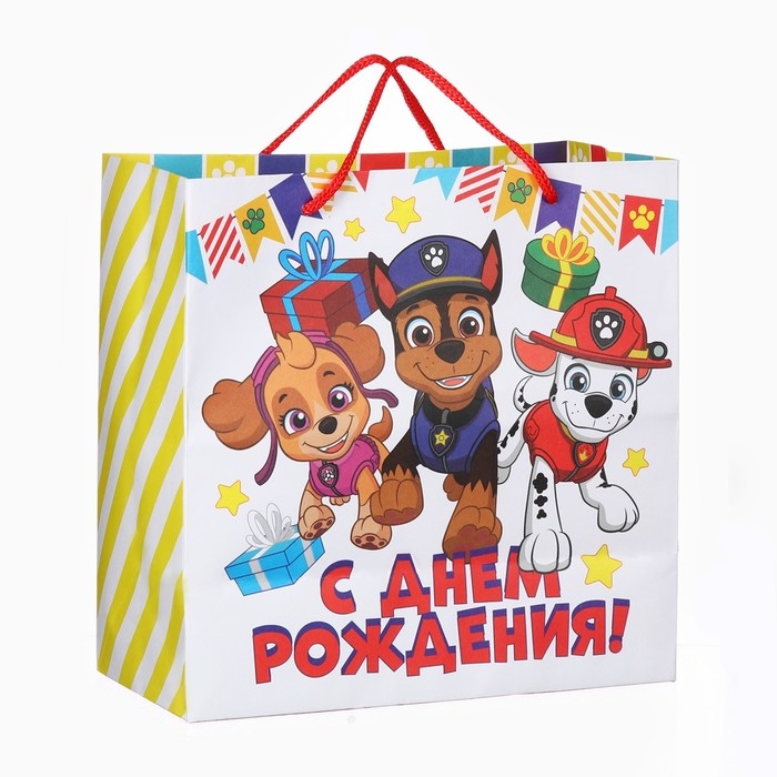 Пакет подарочный крафт "С Днем Рождения" 22х22х11 см, Щенячий патруль
