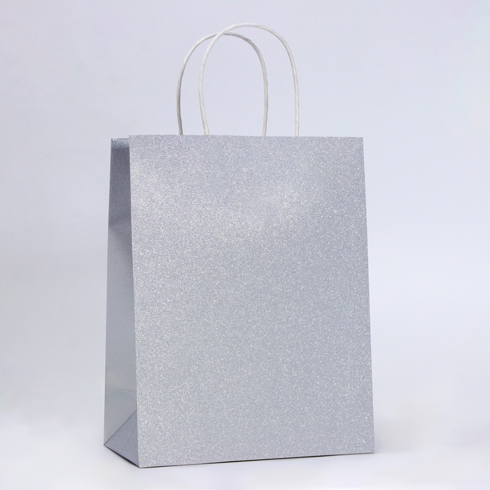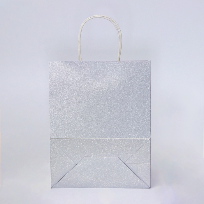 Пакет подарочный бумажный с глиттером серебрянный, 21 х 11 х 27 см