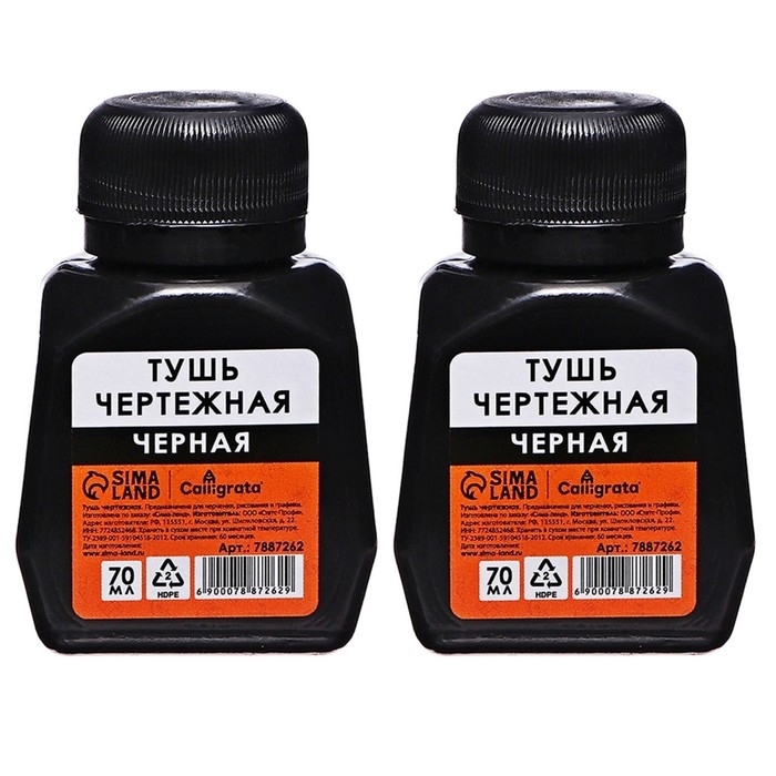 Тушь жидкая чертежная Calligrata 70 мл черная НАБОР 2 ШТУКИ, цвет черный