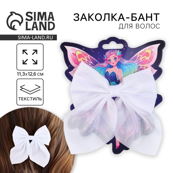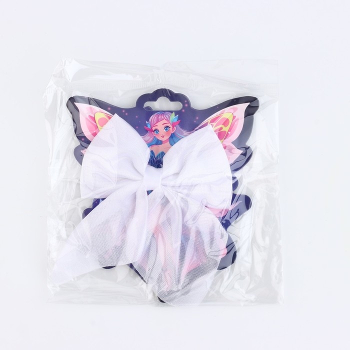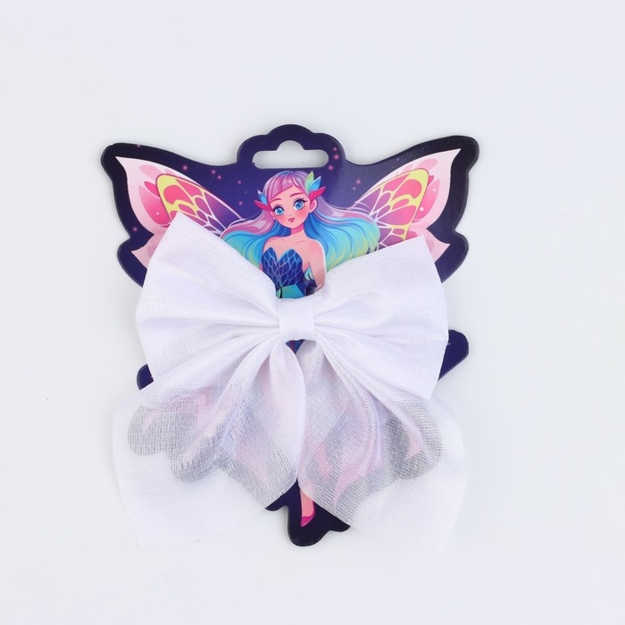 Бант для волос белый школьный «Фея» на заколке,11,3 х 12,6 см