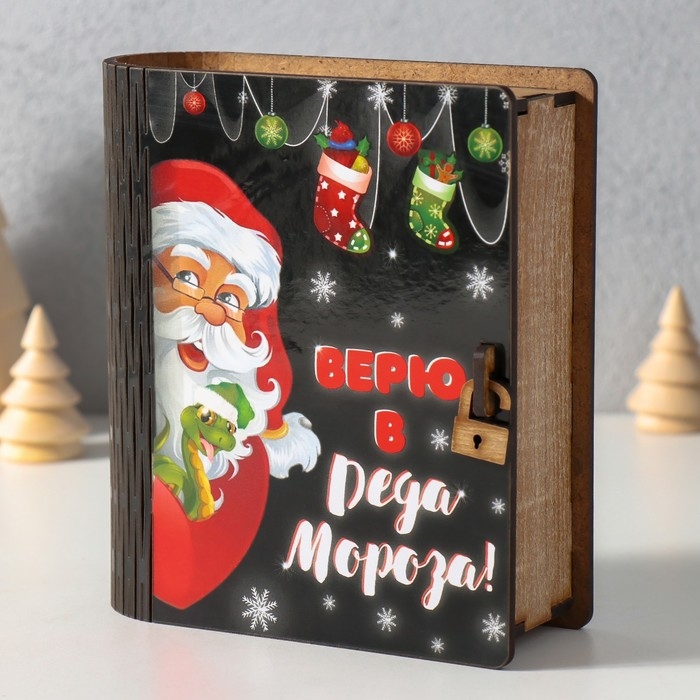 Новогодняя копилка-шкатулка "Верю в Деда Мороза" 14х12х5 см