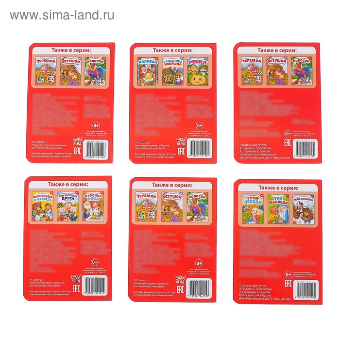 Сказки набор «Русские народные сказки», картон, 6 шт. по 10 стр.