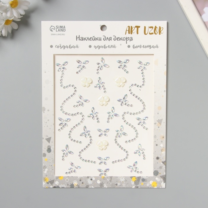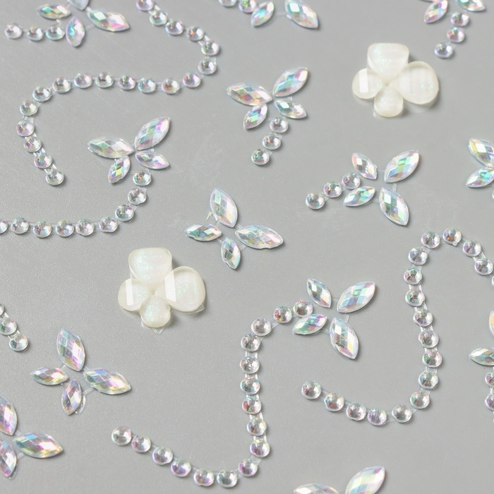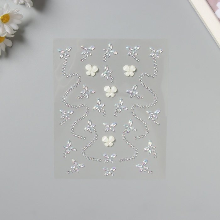 Наклейка пластик стразы на волосы "Белые бабочки" 21х15,5 см