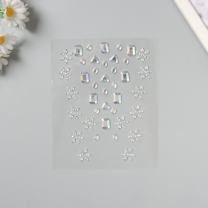 Наклейка пластик стразы на волосы "Геометрия, цветы" серебро 21х15,5 см