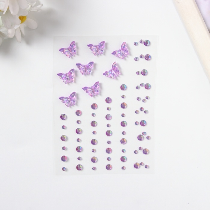Наклейка пластик стразы "Полёт бабочки" фиолетовая 11х7,8 см