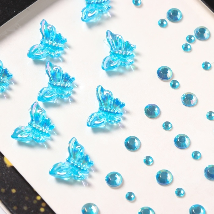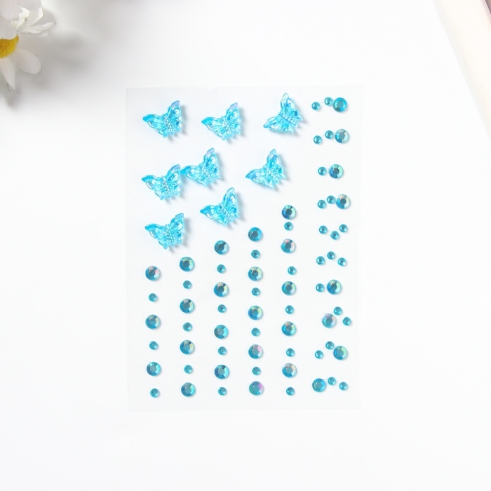 Наклейка пластик стразы "Полёт бабочки" голубая 11х7,8 см