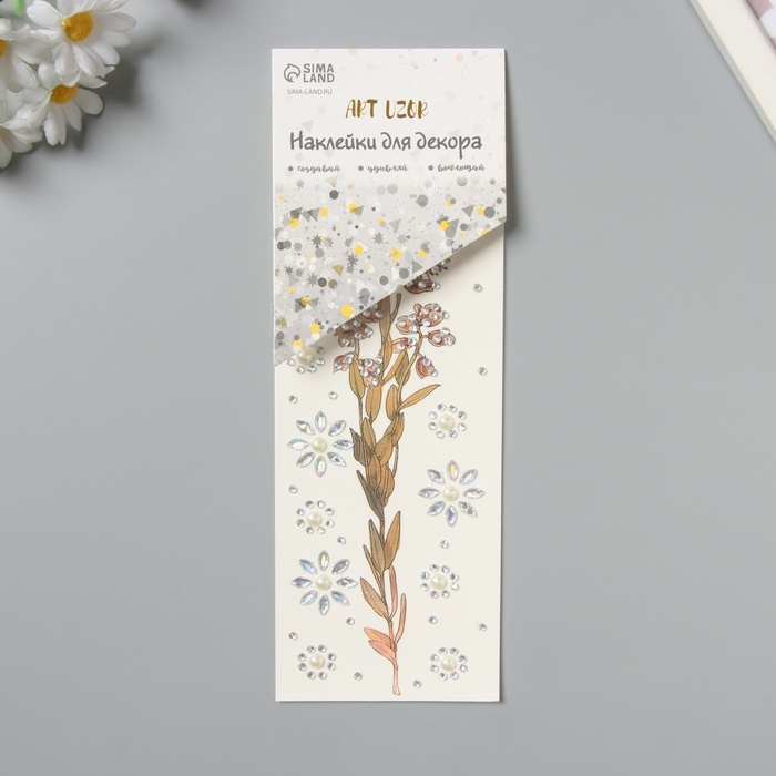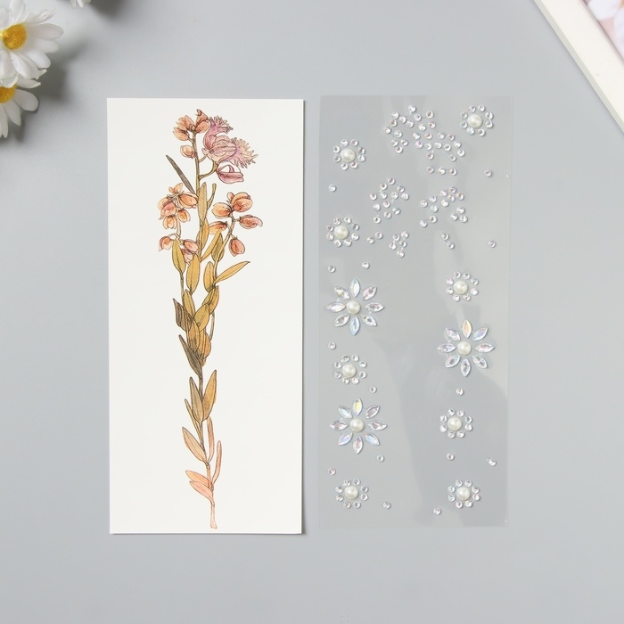 Наклейка пластик стразы тату на тело "Полевой цветок" набор 2 листа 18х8 см