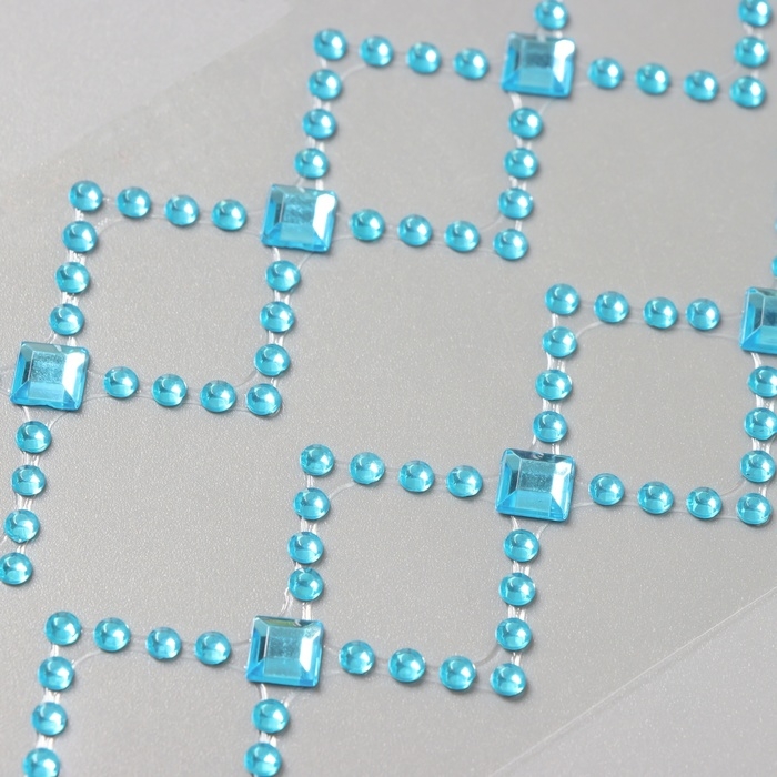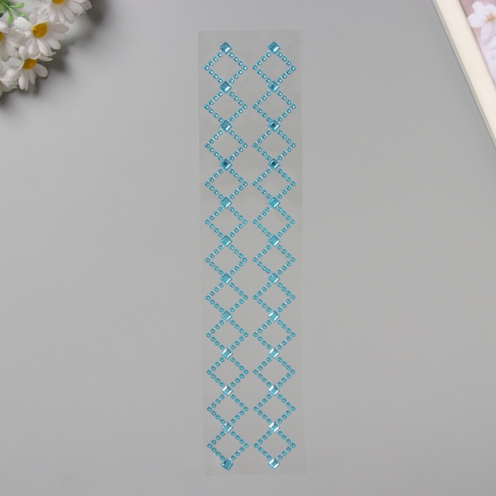 Наклейка пластик стразы "Узор из ромба" синяя 35х8 см