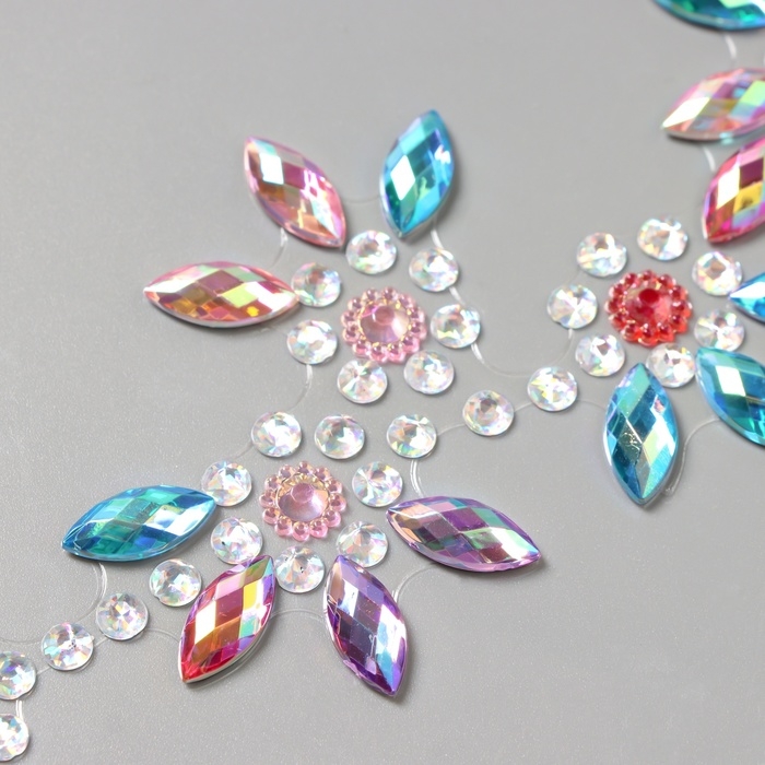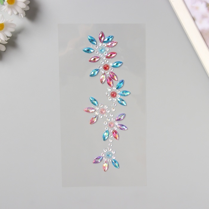 Наклейка пластик стразы на волосы "Цветы" цветной перламутр 25х13 см