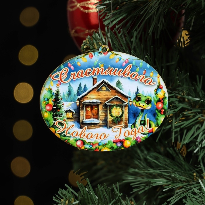 Ёлочная игрушка новогодняя "Счастливого Нового Года!" змея, шарики, 8 х 9 см