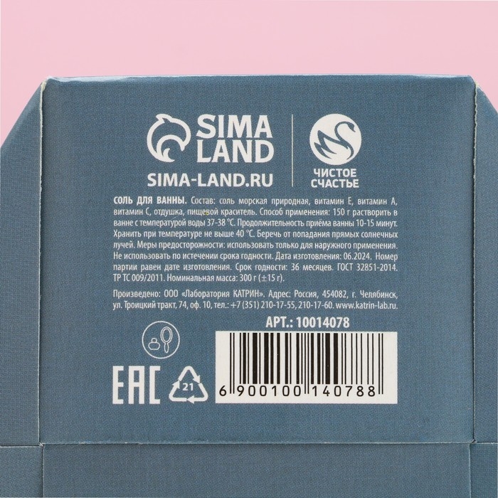 Соль для ванны «С Новым Годом!», 300 г, аромат сливочной ванили, ЧИСТОЕ СЧАСТЬЕ