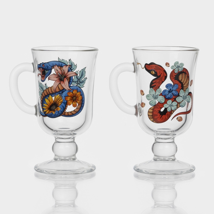 Кружка стеклянная для глинтвейна «Цветы и змеи», 200 мл, МИКС