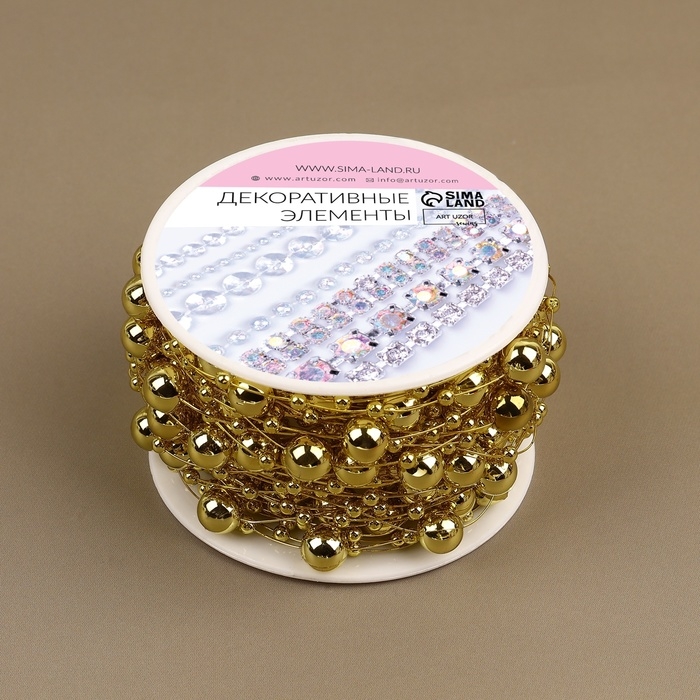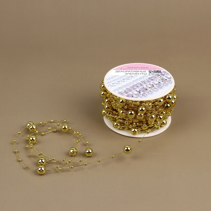 Жемчуг на леске, 3/8 мм, 10 ± 1 м, цвет золотой