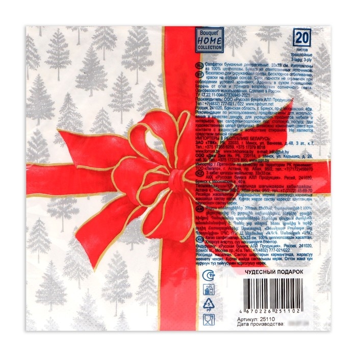 Новогодние салфетки бумажные Home Collection Сlassic «Чудесный подарок», 3 слоя, 33х33 см, 20 шт
