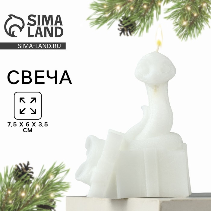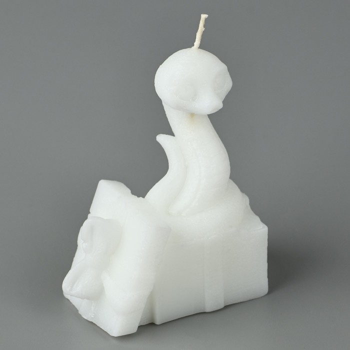 Новый год 2025! Свеча интерьерная «Новогодняя коллекция: Змейка с подарком», белая 77 х 61 х 35