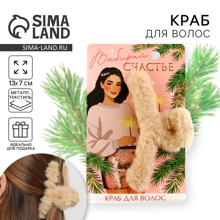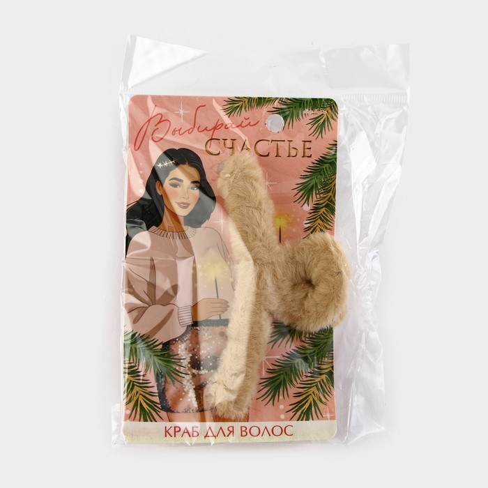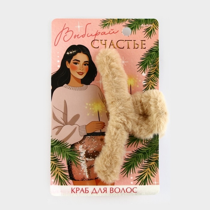 Краб для волос новогодний «Выбирай счастье», на Новый год, 3 х 12 см