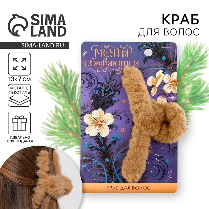 Краб для волос новогодний «Мечты сбываются», на Новый год, 3 х 12 см