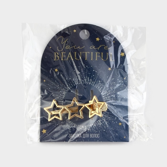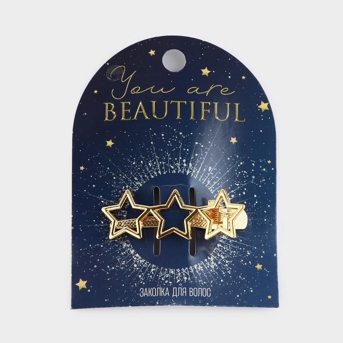 Заколка новогодняя «Ты красивая» на Новый год, звездочки, цвет золото, 5,5 х 2 см