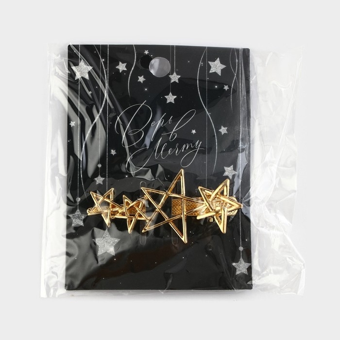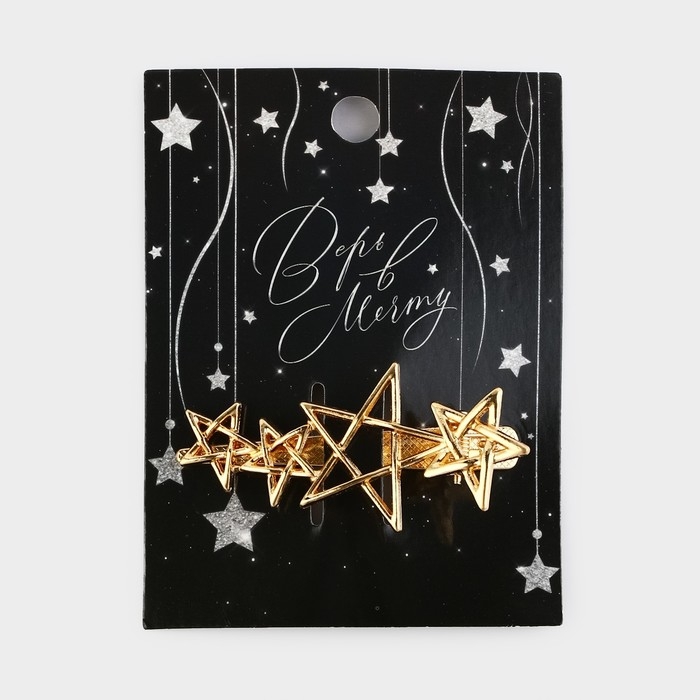 Заколка новогодняя «Верь в мечту» на Новый год, звездочки, цвет золото, 6,5 х 3 см