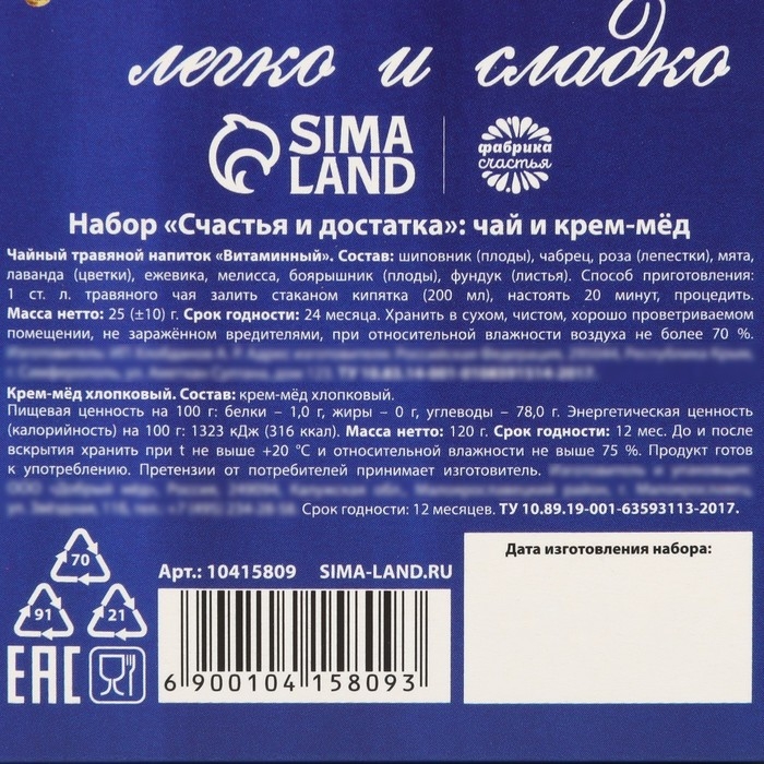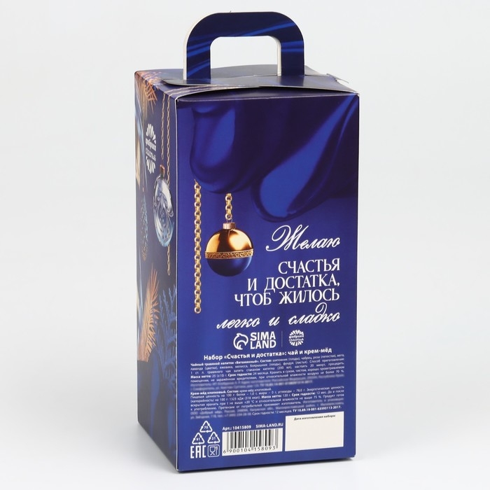 Подарочный набор новогодний «Счастья и достатка» : чай травяной, мёд кремовый хлопковый