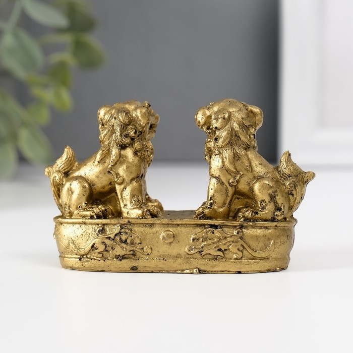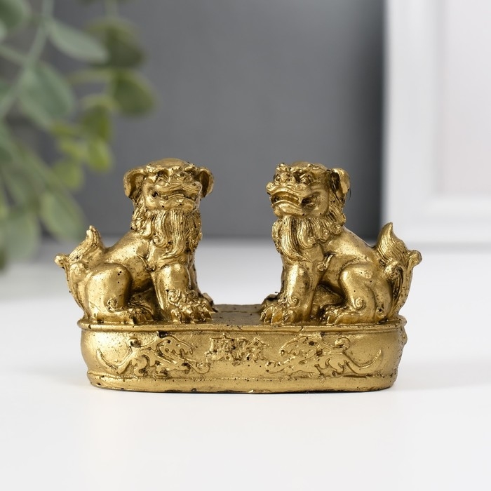 Нэцкэ полистоун "Небесные львы (собаки Фу)" бронза 2,8х8,2х5 см