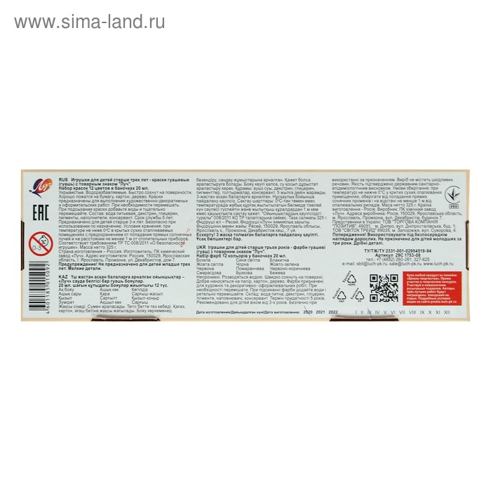 Гуашь 12 цветов х 17 мл, ErichKrause, в картонной упаковке