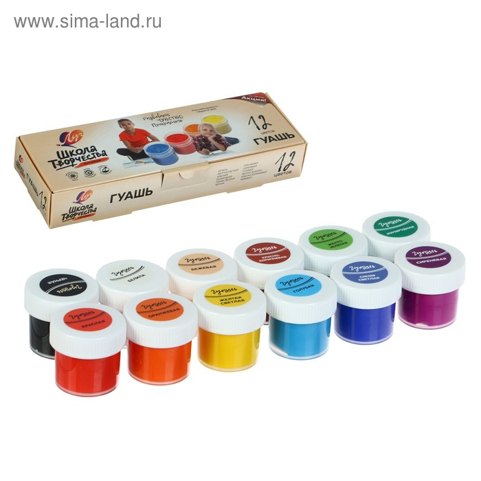 Гуашь 12 цветов х 20 мл "Школа творчества"