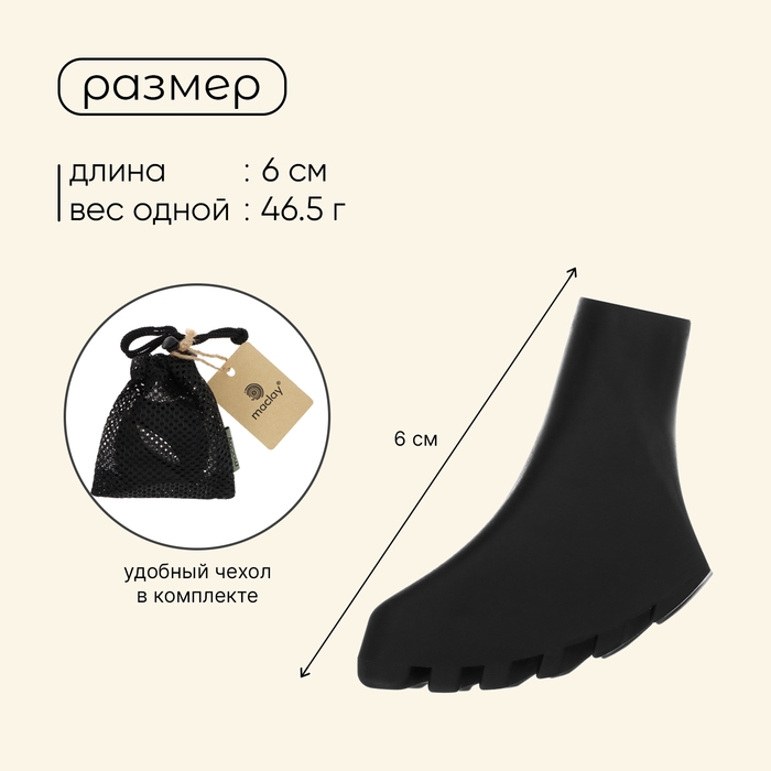 Набор защитных колпачков для трекинговых палок, башмачки, 2 шт., цвет чёрный