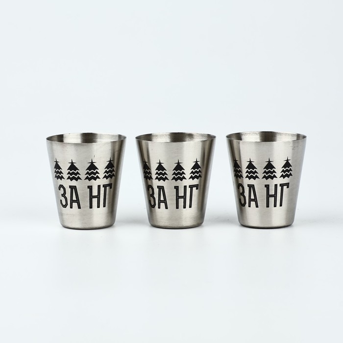 Новый год. Набор стопок в чехле из кожзама «За счастливый год», 3 шт х 30 мл