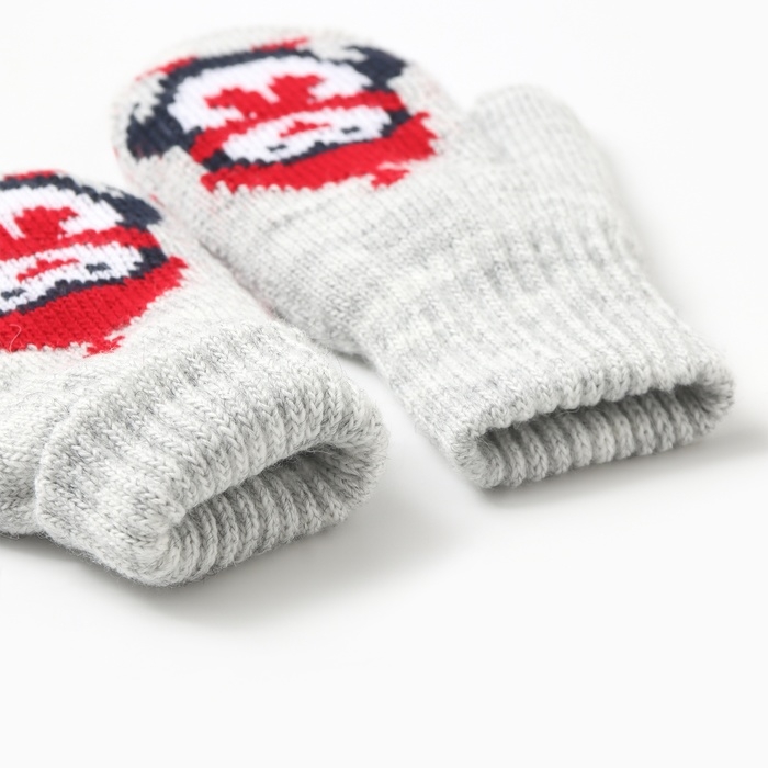 Новый год. Варежки двойные детские "Пингвин", цвет серый, р-р 16