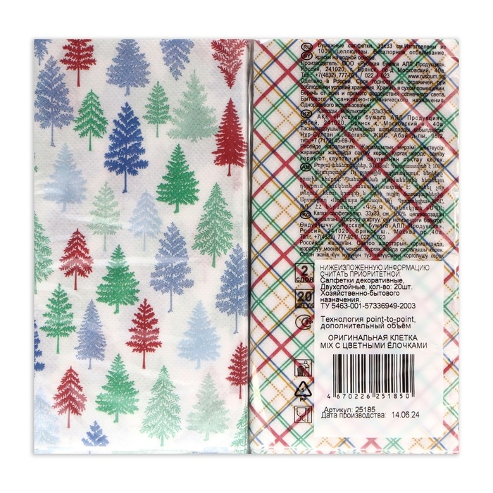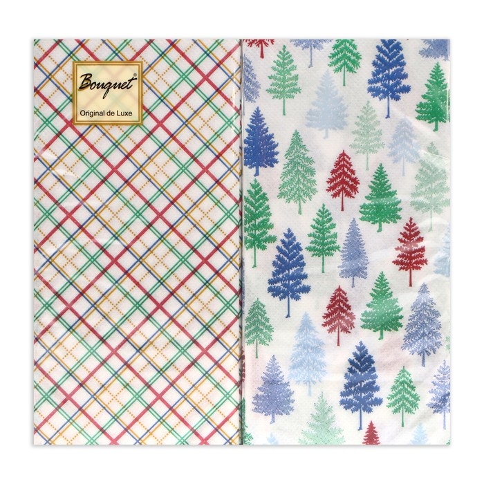 Новогодние салфетки бумажные Bouquet Original de luxe «Клетка + Ёлочки», 2 слоя, 33х33 см, 20 шт.
