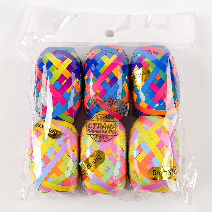 Набор декоративных цветных лент, длина 10 м, набор 6 шт.