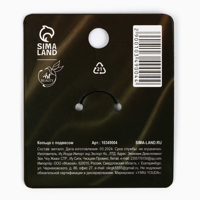 Кольцо с подвесом новогоднее «Змейка» на Новый год, размер 17.