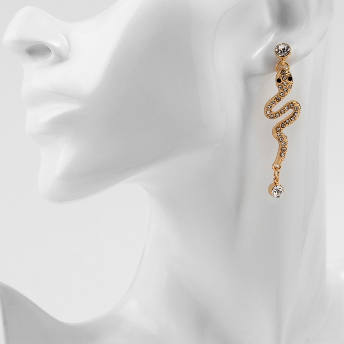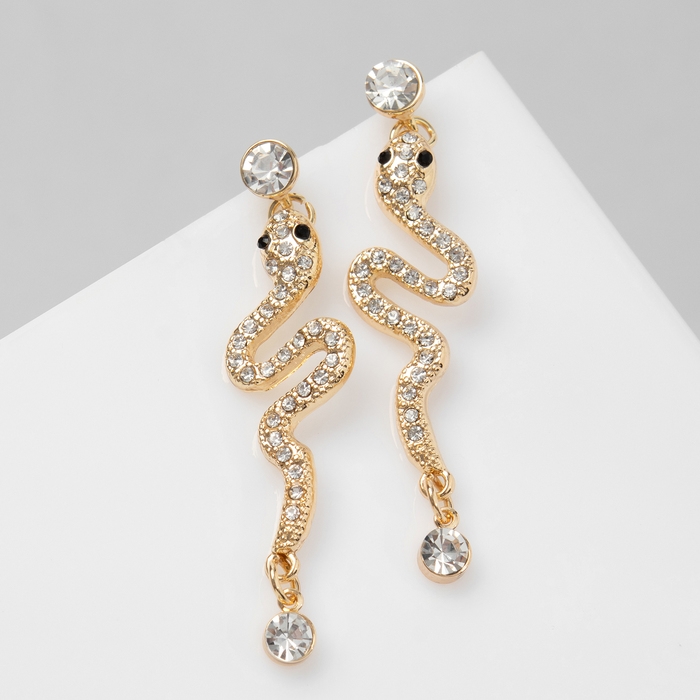 Новый год! Символ года 2025! Серьги со стразами «Змея» обольщение, цвет белый в золоте