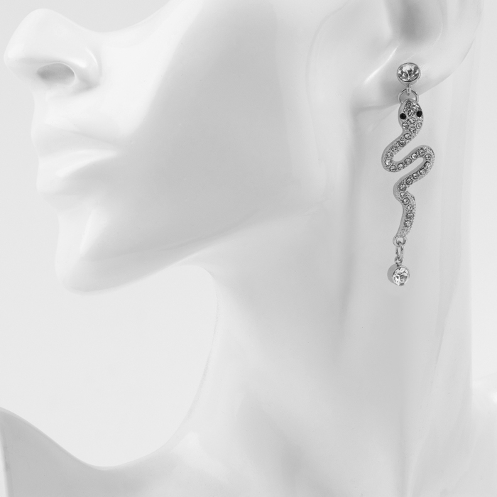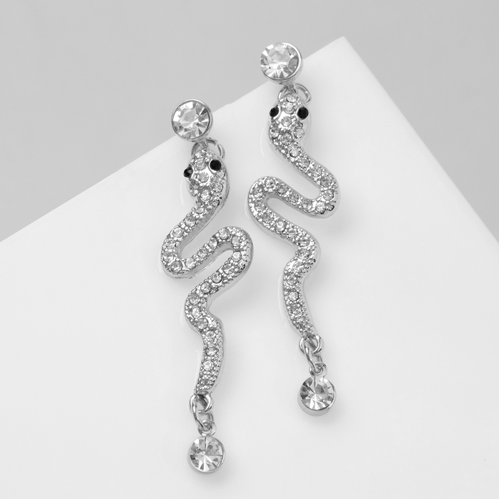 Новый год! Символ года 2025! Серьги со стразами «Змея» обольщение, цвет белый в серебре