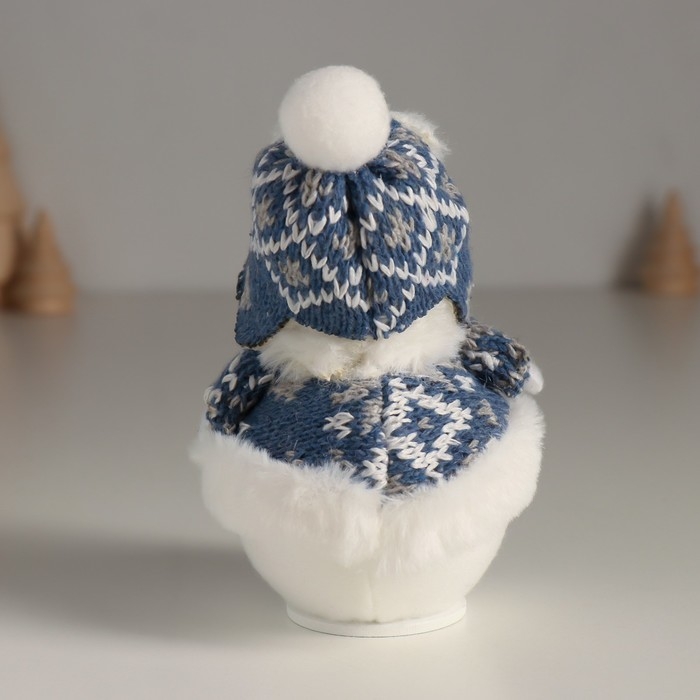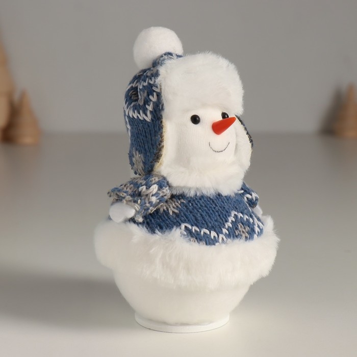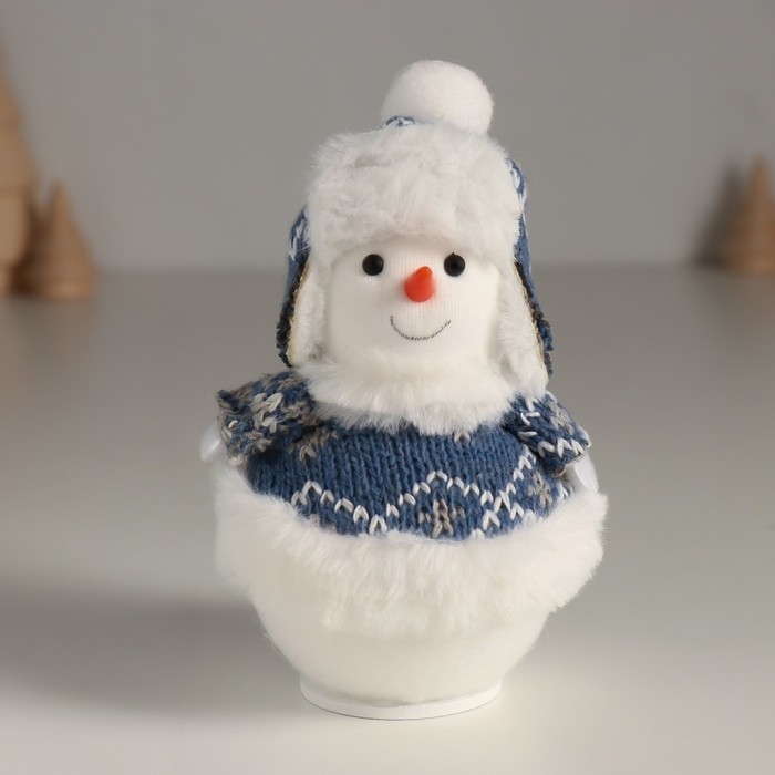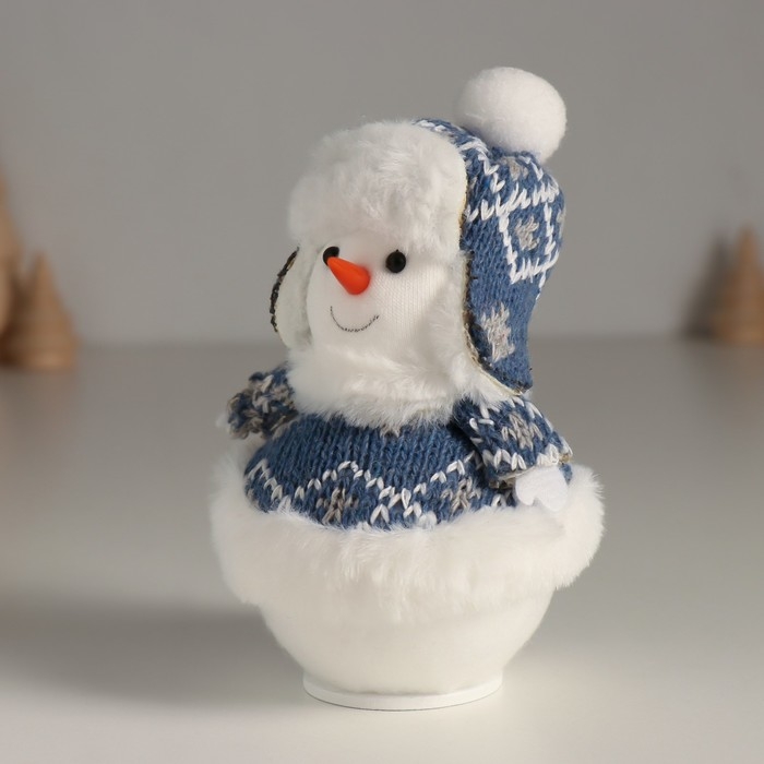 Сувенир текстиль "Снеговик в вязаной синей шубке" 7,5х7,5х13 см