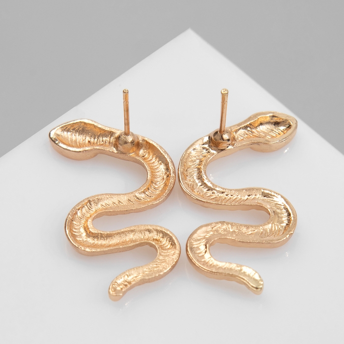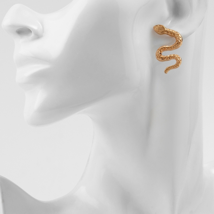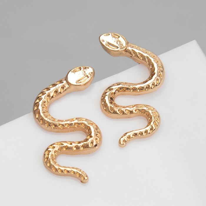 Новый год! Символ года 2025! Серьги металл «Змея» искусительница, цвет золото
