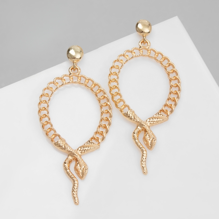 Новый год! Символ года 2025! Серьги металл «Змея» плетение, цепь, цвет золото