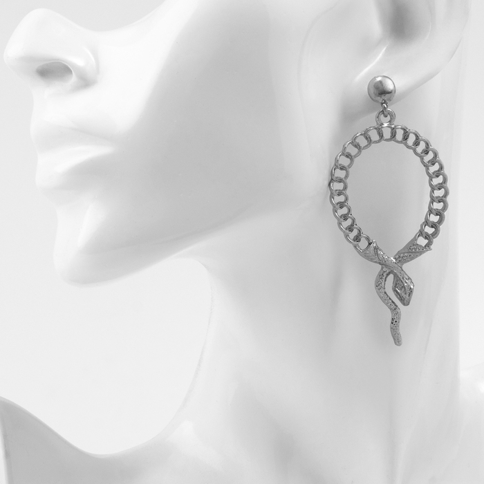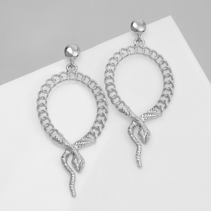 Новый год! Символ года 2025! Серьги металл «Змея» плетение, цепь, цвет серебро