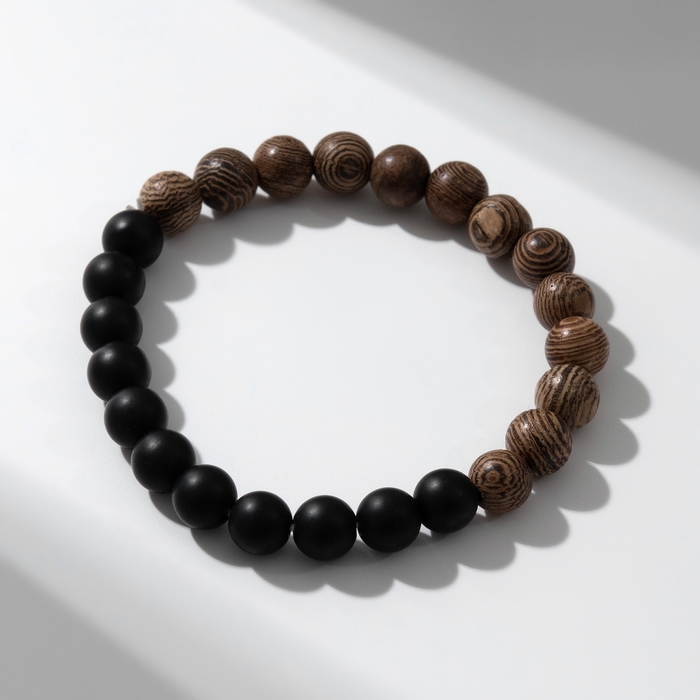 Браслет шар №8 «Аметист», цвет чёрно-коричневый