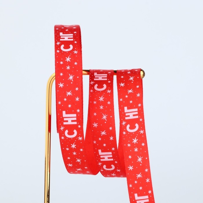 Лента атласная «С НГ», красная, 2 см х 22.5 м, Новый год
