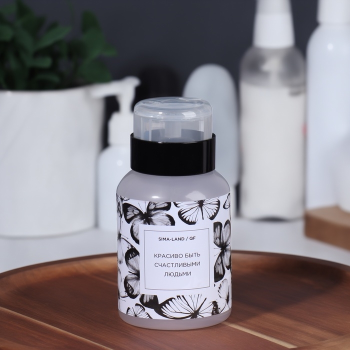В такой баночке удобно хранить средство для снятия лака, лосьон для лица и другие косметические составы: они не выветрятся и не вытекут. Ёмкостью очень легко пользоваться: просто положите сверху ватный диск и нажмите на помпу, чтобы он пропитался содержимым. Такая система уменьшает расход материала и делает процедуру быстрее и приятнее.