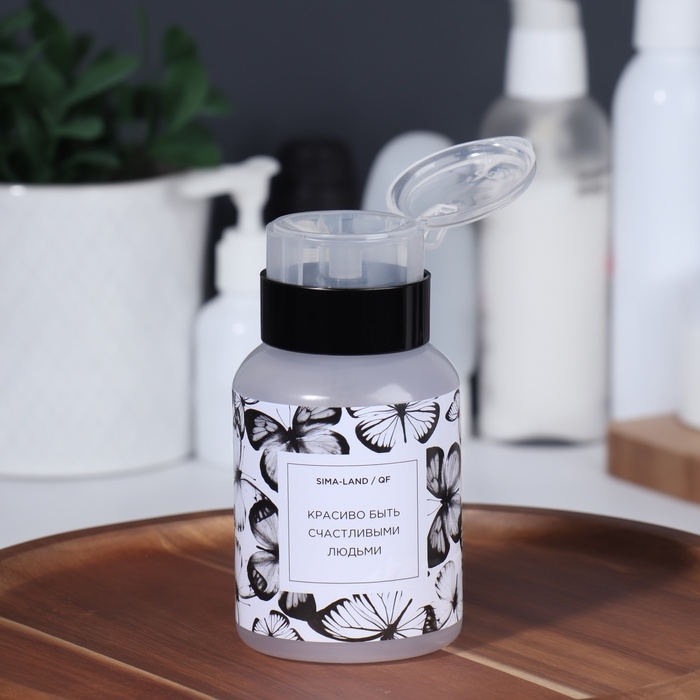 Флакон с помпой «Бабочки», 250 мл, цвет черный/прозрачный