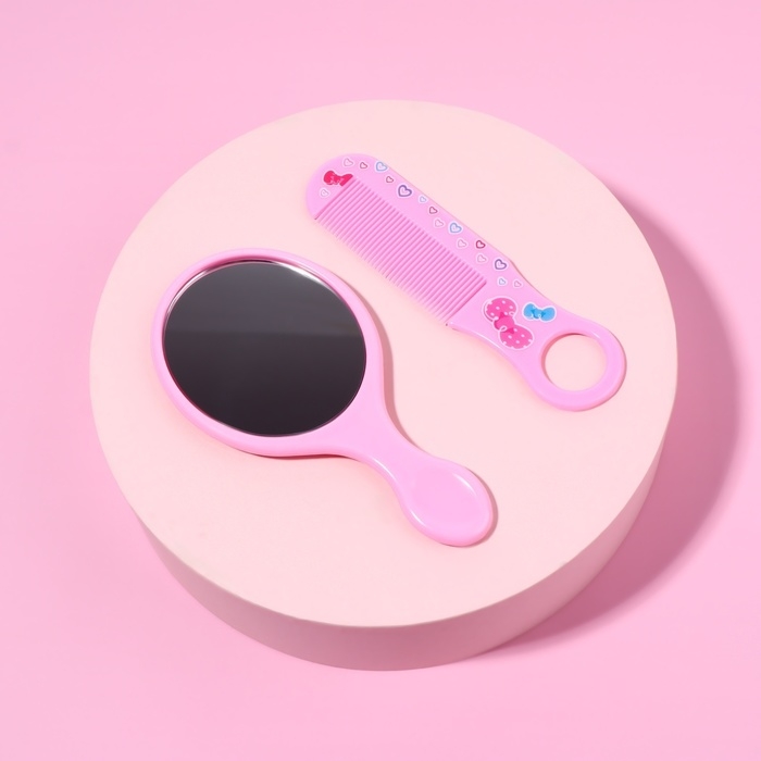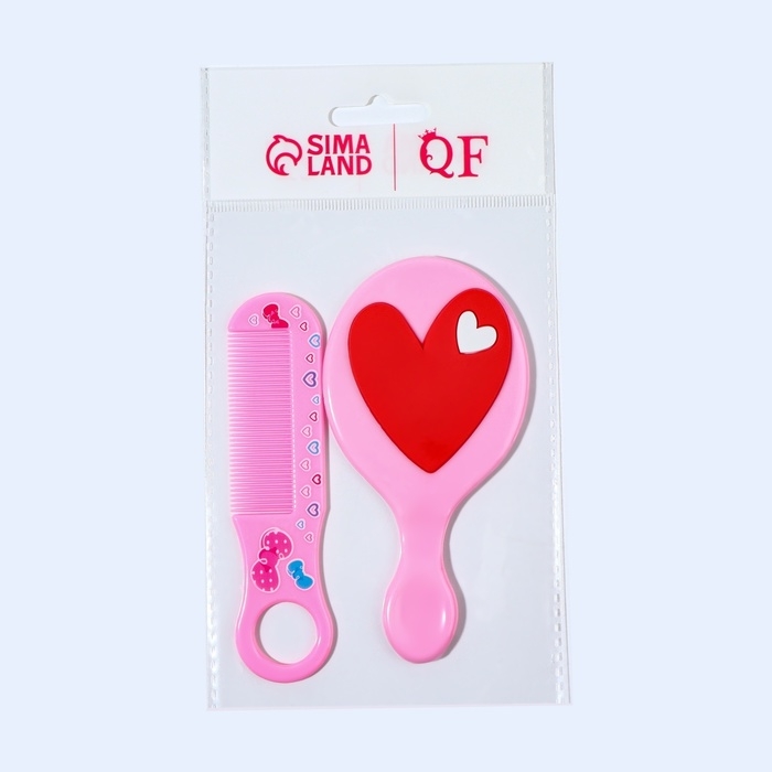 Набор с зеркалом и расчёской «Сердце», 12 × 6,1 см, цвет нежно - розовый
