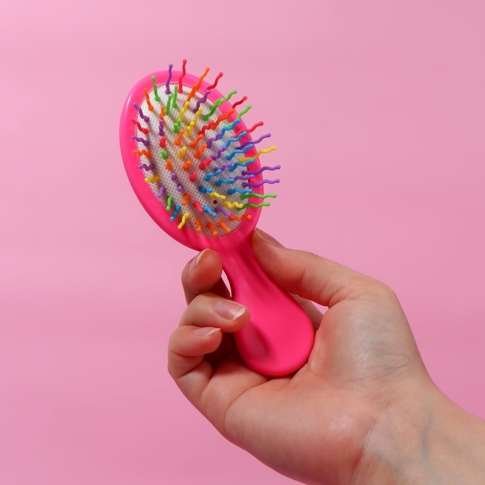 Расчёска - мини массажная, 5,5 × 14 см, цвет розовый
