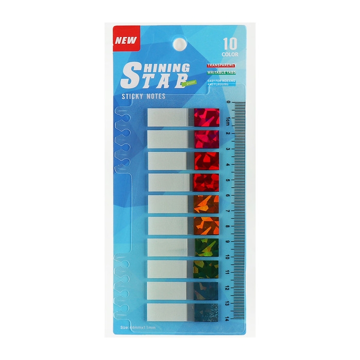 Блок-закладки с липким краем пластик 20л х 10 цветов белый/голография, 12мм х 45мм