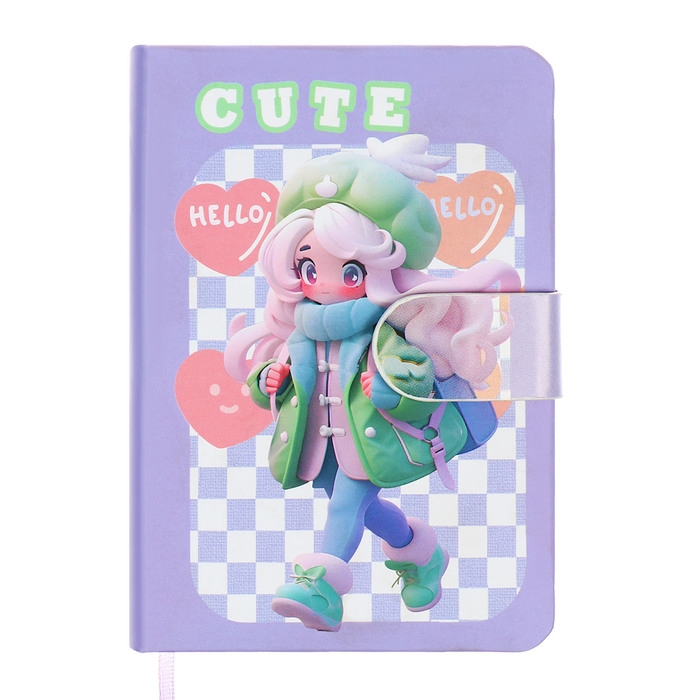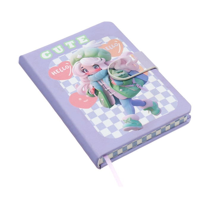 Записная книжка подарочная 96л,линия, с хлястиком, срез с рисунком обложки, Аниме (12,9х9см) 10539