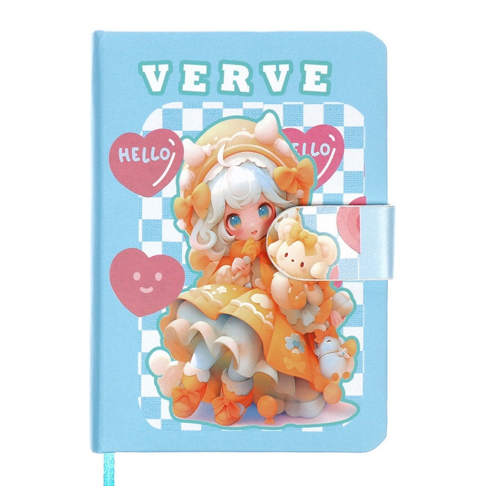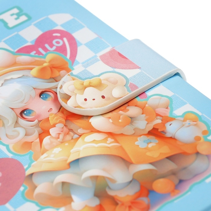 Записная книжка подарочная 96л,линия, с хлястиком, срез с рисунком обложки, Аниме (12,9х9см) 10539