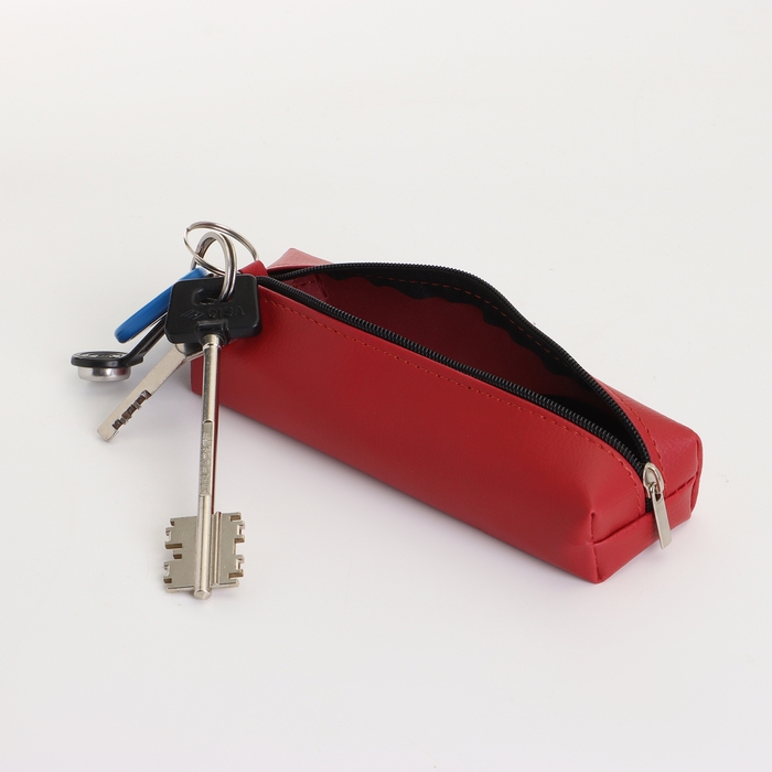 Ключница на молнии, длина 16 см, кольцо, карабин, цвет красный